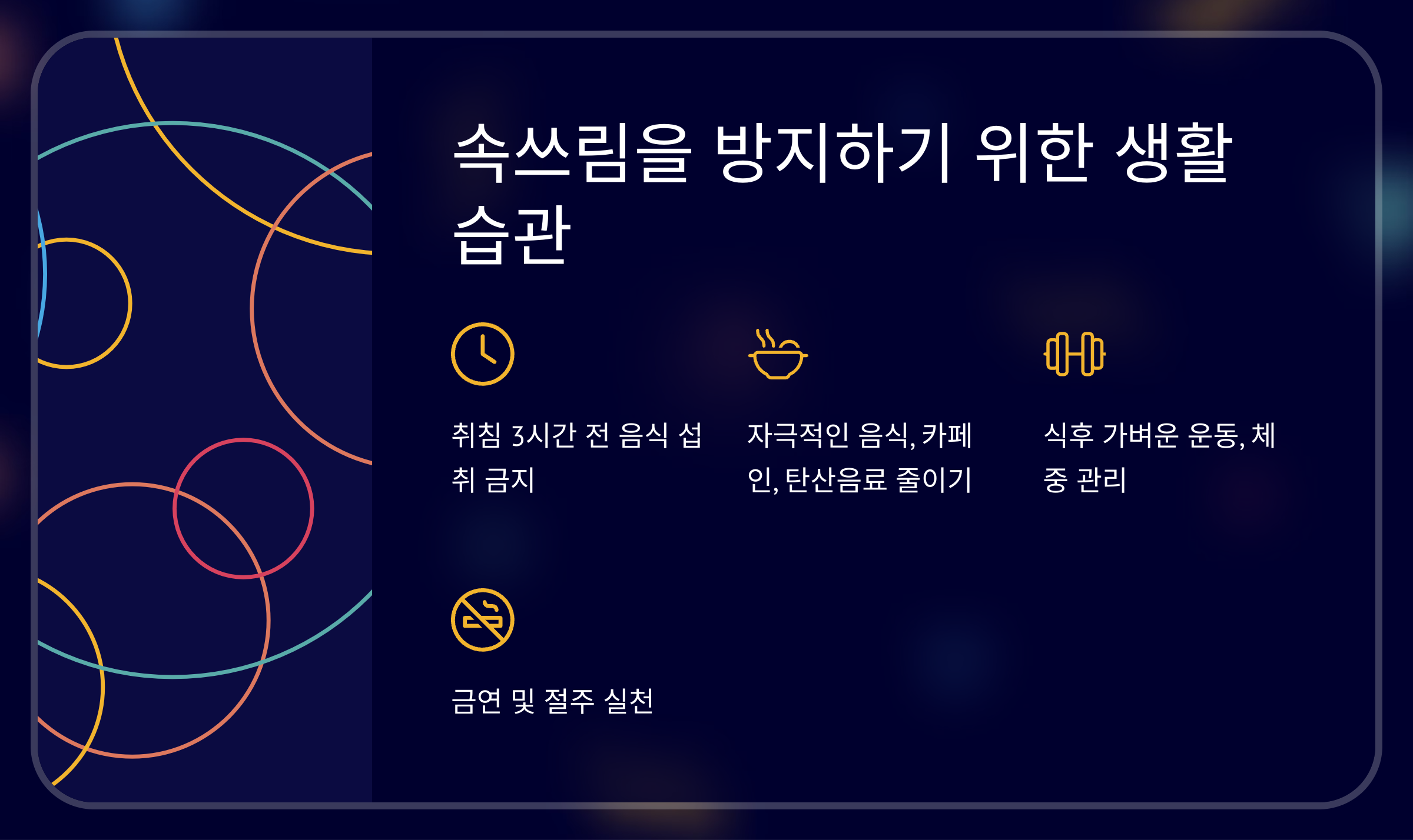 ✔ 취침 3시간 전 음식 섭취 금지