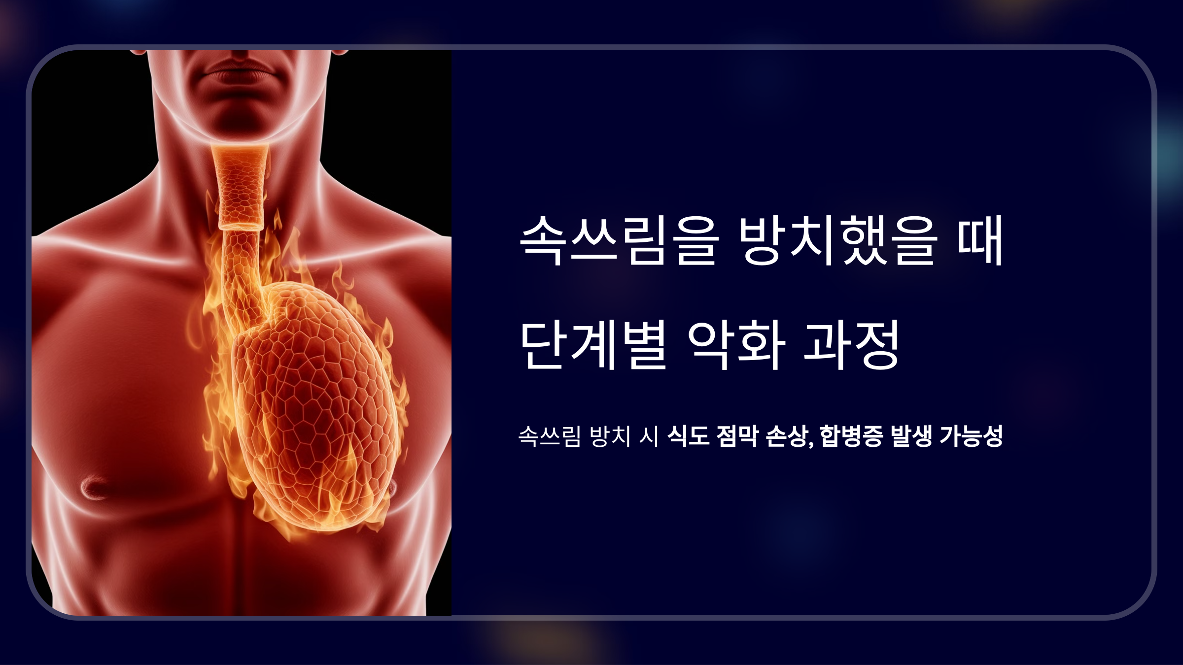속쓰림은 흔한 증상이라 대수롭지 않게 여기고 방치하는 경우가 많습니다. 하지만 단순한 속쓰림이 반복되면 위산 역류로 인해 식도 점막이 손상되고, 다양한 합병증으로 발전할 가능성이 있습니다. 오늘은 경미한 속쓰림이 심각한 질환으로 이어지는 진행 과정을 사례별로 살펴보겠습니다.