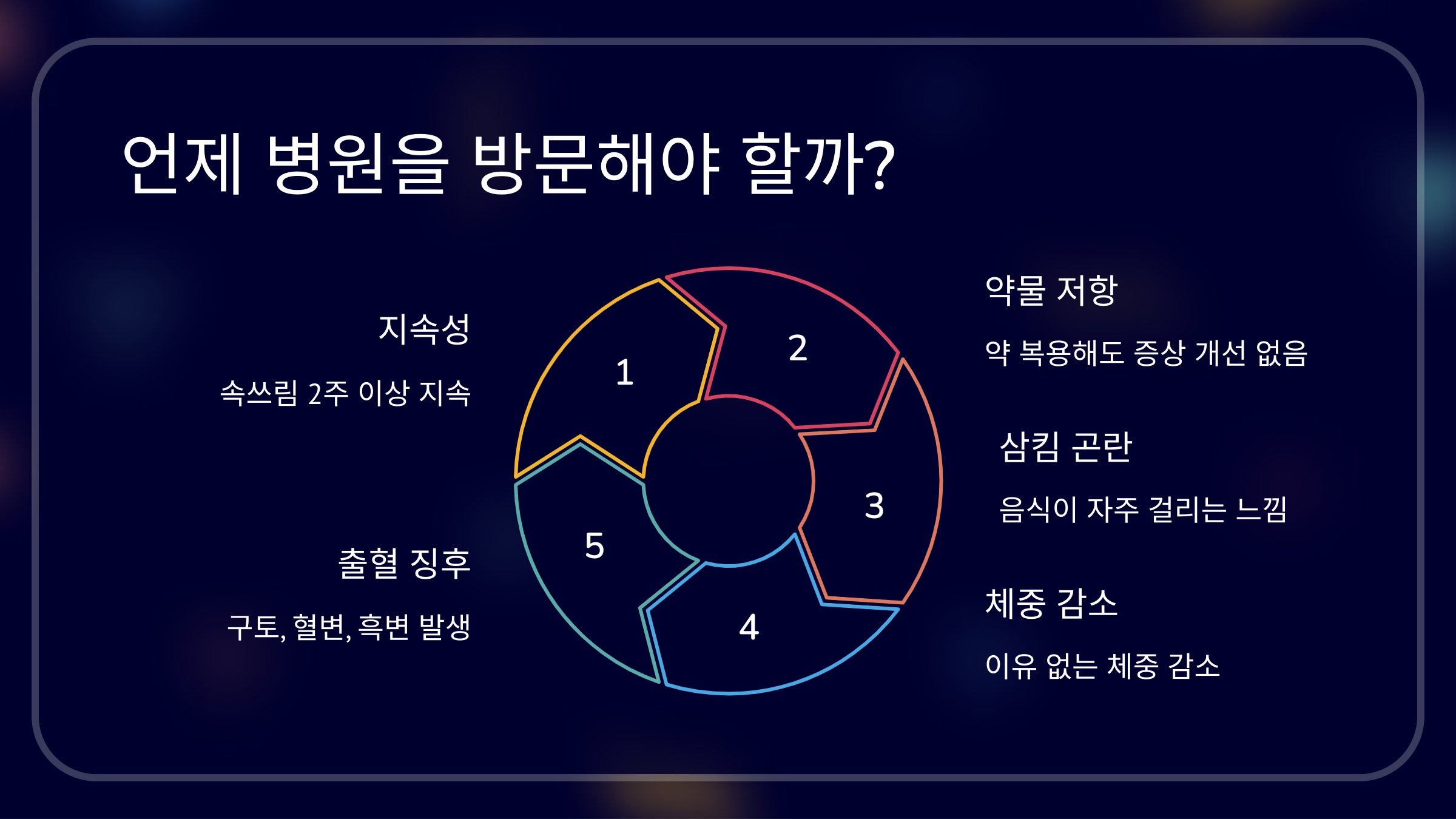 다음과 같은 증상이 지속된다면 병원을 방문해 정확한 검진을 받아야 합니다.