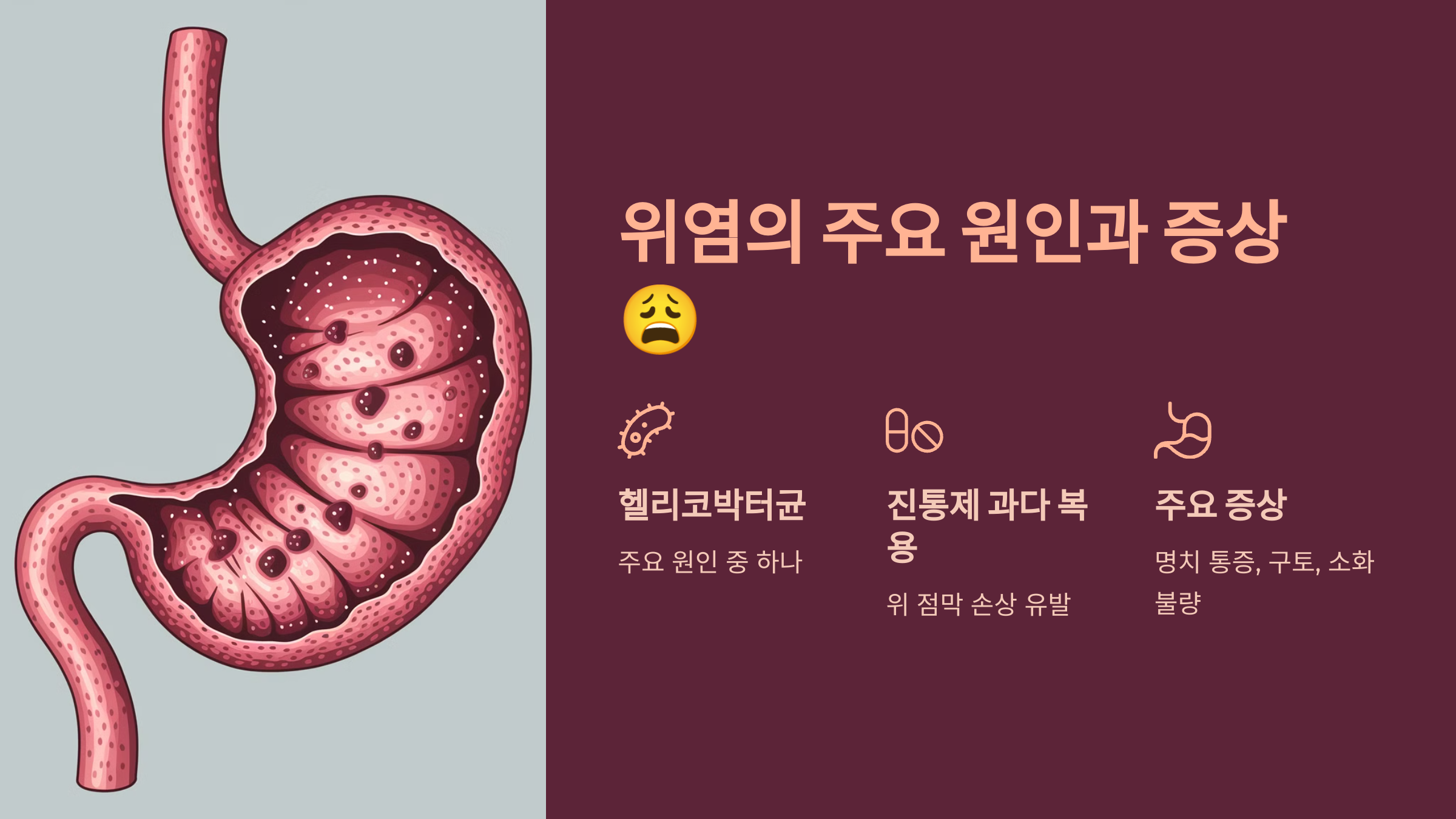- 위염은 위 점막이 손상되어 염증이 생기는 질환이에요.