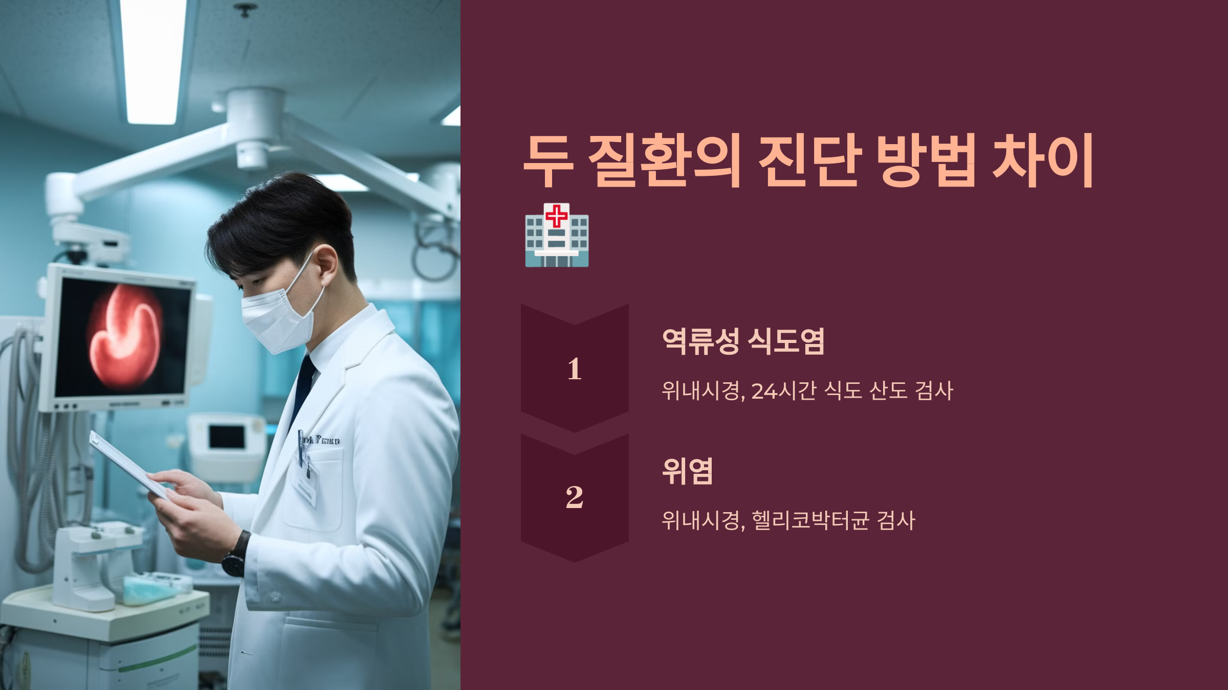 둘 다 위와 관련된 질환이지만, 발생하는 부위와 원인이 달라요.