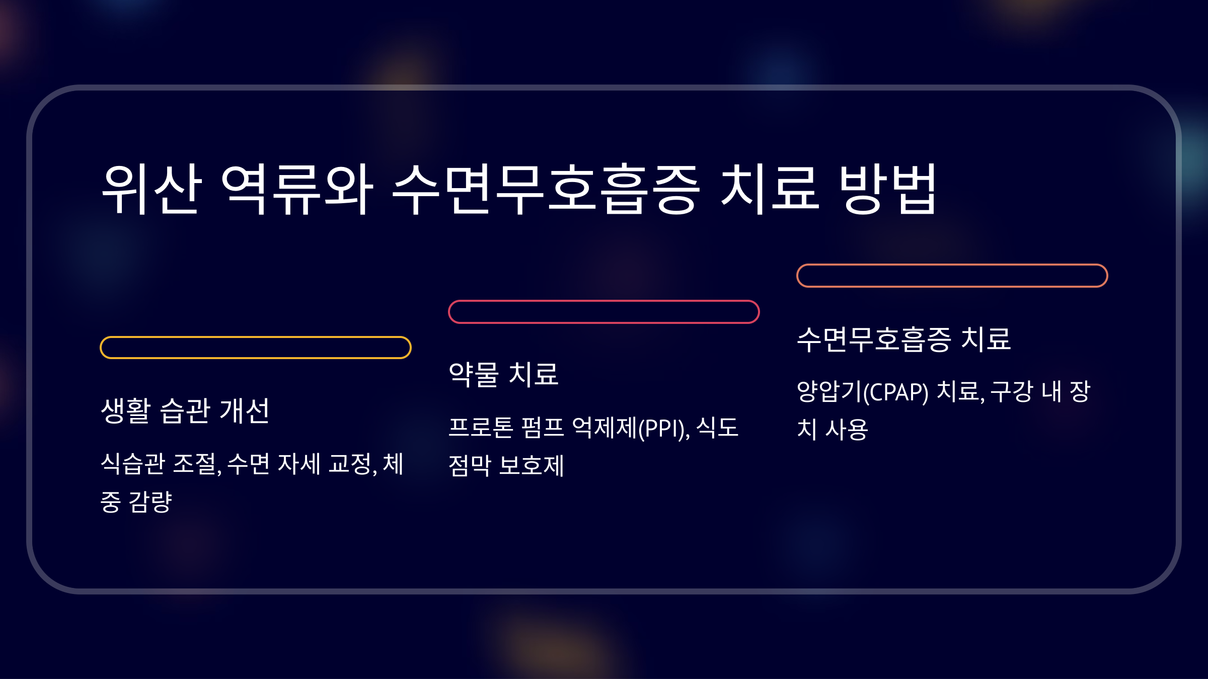 이러한 증상이 지속된다면 위산 역류와 수면무호흡증을 동시에 관리해야 합니다.